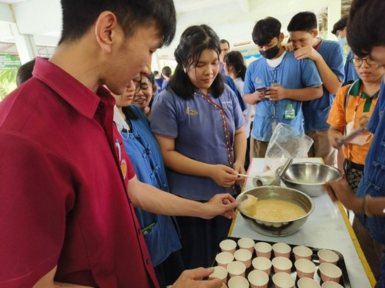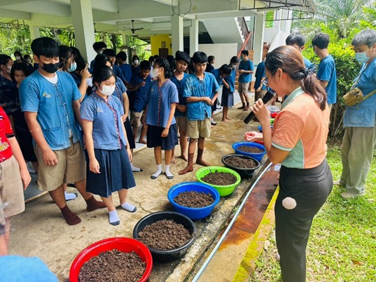 โครงการเศรษฐกิจพอเพียง ประจำปีงบประมาณ พ.ศ. 2566 เมื่อวันที่ 24 สิงหาคม 2566 ณ โรงเรียนเนินทรายวิทยาคม สาธิตและฝึกปฏิบัติ เรื่อง การเลี้ยงไส้เดือน และการแปรรูปอาหาร (เค้กกล้วยหอม)