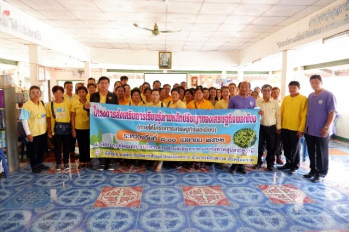 โครงการส่งเสริมการเรียนรู้ตามหลักปรัชญาของเศรษฐกิจพอเพียง (ภายใต้โครงการเศรษฐกิจพอเพียง) ระหว่างวันที่ 8 - 10 เมษายน 2562 จัดอบรมให้ความรู้ ณ ห้องประชุมองค์การบริหารส่วนตำบลเนินทราย อำเภอเมืองตราด จังหวัดตราด และศึกษาดูงาน ณ กศน.ตำบลโพธิ์ไทร อำเภอโพธิ์ไทร จังหวัดอุบลราชธานี และศูนย์อำนวยการประสานงานโครงการพัฒนาเพื่อความมั่นคงเฉพาะพื้นที่ป่าดงนาทาม อันเนื่องมาจากพระราชดำริ อำเภอวารินชำราบ จังหวัดอุบลราชธานี