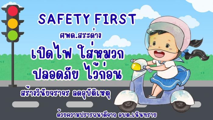 ขอความร่วมมือประชาชนในตำบลเนินทราย ผู้ปกครองที่ขับขี่รถจักรยานยนต์สวมใส่หมวกกันน็อคให้น้อง ๆ นักเรียนในศูนย์พัฒนาเด็กเล็กสระด่างและโรงเรียนในเขตตำบลเนินทราย ตามสโลแกนรณรงค์ ” SAFETY FIRST(เซฟตี้ เฟิร์ส) ศพด.สระด่าง เปิดไฟ ใส่หมวก ปลอดภัย ไว้ก่อน ร่วมกันสร้างวินัยจราจร ลดอุบัติเหตุ” บนท้องถนน และขอความร่วมมือผู้ปกครองที่ขับรถยนต์ คาดเข็มขัดนิรภัยขณะขับขี่รถเพื่อความปลอดภัย มีน้ำใจให้แก่เพื่อนร่วมทาง ด้วยความปรารถนาดีจาก อบต.เนินทราย