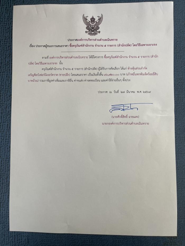 ประกาศต่าง ๆ เกี่ยวกับการจัดซื้อจัดจ้างหรือการจัดหาพัสดุ ประกาศผู้ชนะการเสนอราคาซื้อครุภัณฑ์สำนักงาน จำนวน 5 รายการ
