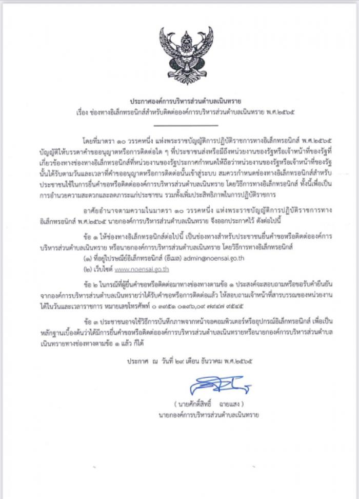 ข่าวประชาสัมพันธ์ ประกาศองค์การบริหารส่วนตำบลเนินทราย เรื่อง ช่องทางอิเล็กทรอนิกส์สำหรับติดต่อองค์การบริหารส่วนตำบลเนินทราย พ.ศ. 2565