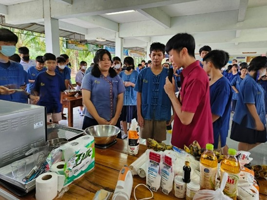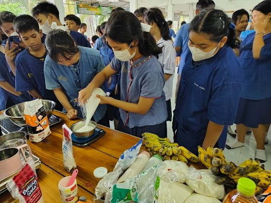 โครงการเศรษฐกิจพอเพียง ประจำปีงบประมาณ พ.ศ. 2566 เมื่อวันที่ 24 สิงหาคม 2566 ณ โรงเรียนเนินทรายวิทยาคม สาธิตและฝึกปฏิบัติ เรื่อง การเลี้ยงไส้เดือน และการแปรรูปอาหาร (เค้กกล้วยหอม)