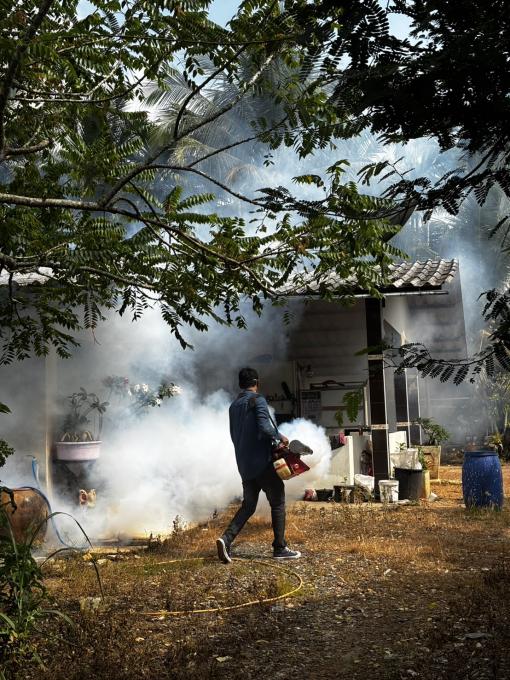 ออกให้บริการฉีดพ่นหมอกควันกำจัดยุงลาย กรณีเกิดโรคไข้เลือดออกในพื้่นที่ ตำบลเนินทราย