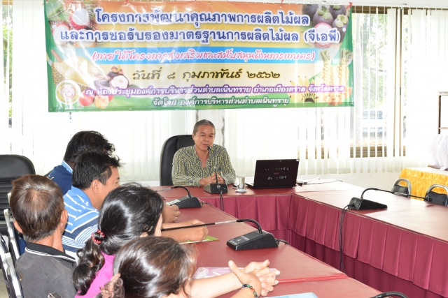 โครงการพัฒนาคุณภาพการผลิตไม้ผลและการขอรับรองมาตรฐานการผลิตไม้ผล (จีเอพี) (ภายใต้โครงการส่งเสริมและสนับสนุนด้านการเกษตร) ในวันที่ 8 กุมภาพันธ์ 2562 ณ ห้องประชุมองค์การบริหารส่วนตำบลเนินทราย ตำบลเนินทราย อำเภอเมืองตราด จังหวัดตราด