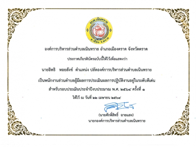 โครงการเชิดชูเกียรติพนักงานส่วนตำบลผู้มีผลการปฏิบัติงานดีเด่น ประจำปีงบประมาณ พ.ศ. 2564 ตามโครงการส่งเสริมคุณธรรมและจริยธรรม เพื่อยกย่องเชิดชูเกียรติบุคลากรขององค์การบริหารส่วนตำบลเนินทราย และส่งเสริมด้านคุณธรรม จริยธรรม สร้างแรงจูงใจให้พนักงานส่วนตำบล ลูกจ้าง พนักงานจ้าง ประพฤติปฏิบัติตามมาตรฐานคุณธรรม จริยธรรม และปฏิบัติงานอย่างมีประสิทธิภาพด้วยความซื่อสัตย์ สุจริต และมุ่งสัมฤทธิ์ต่อภารกิจของราชการ