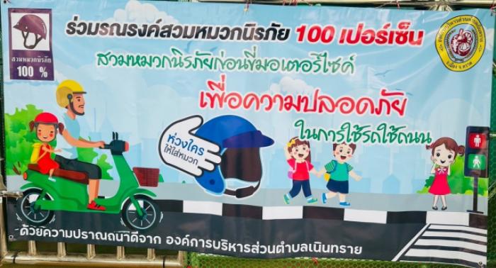 ประชาสัมพันธ์องค์การบริหารส่วนตำบลเนินทราย เรื่อง ขับขี่ปลอดภัย สวมหมวกนิรภัย ใส่ใจกฎจราจร การสวมหมวกนิรภัย 100%