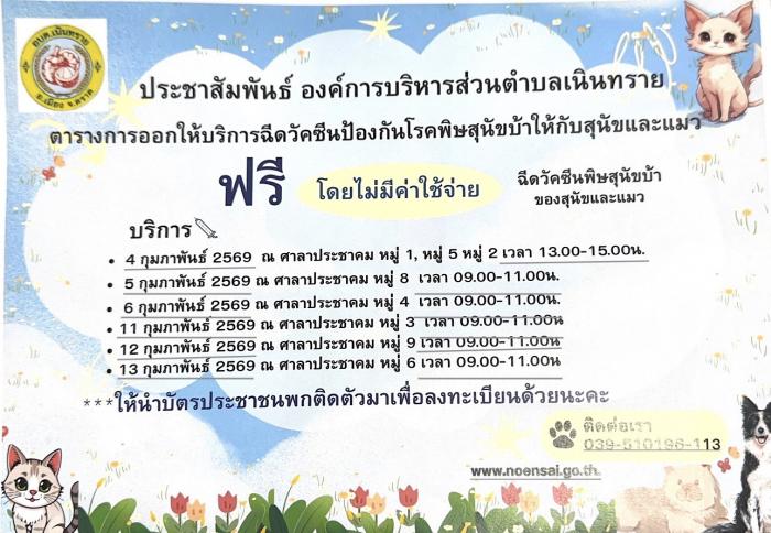 ข่าวประชาสัมพันธ์ ประชาสัมพันธ์ ตารางการออกให้บริการฉีดวัคซีนป้องกันโรคพิษสุนัขบ้า