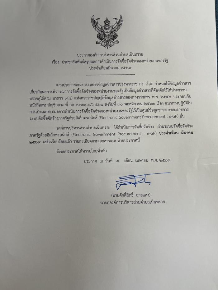 สรุปผลการจัดซื้อจัดจ้างหรือการจัดหาพัสดุรายเดือน ประชาสัมพันธ์สรุปผลการดำเนินการจัดซื้อจัดจ้างเดือนมีนาคม 2569