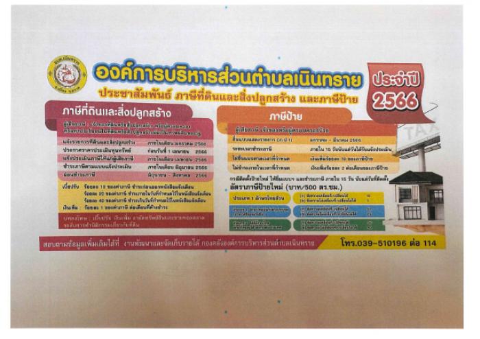 ข่าวประชาสัมพันธ์ ประชาสัมพันธ์ กำหนดการ เรื่องภาษีที่ดินและสิ่งปลูกสร้าง และภาษีป้าย ประจำปี พ.ศ. 2566